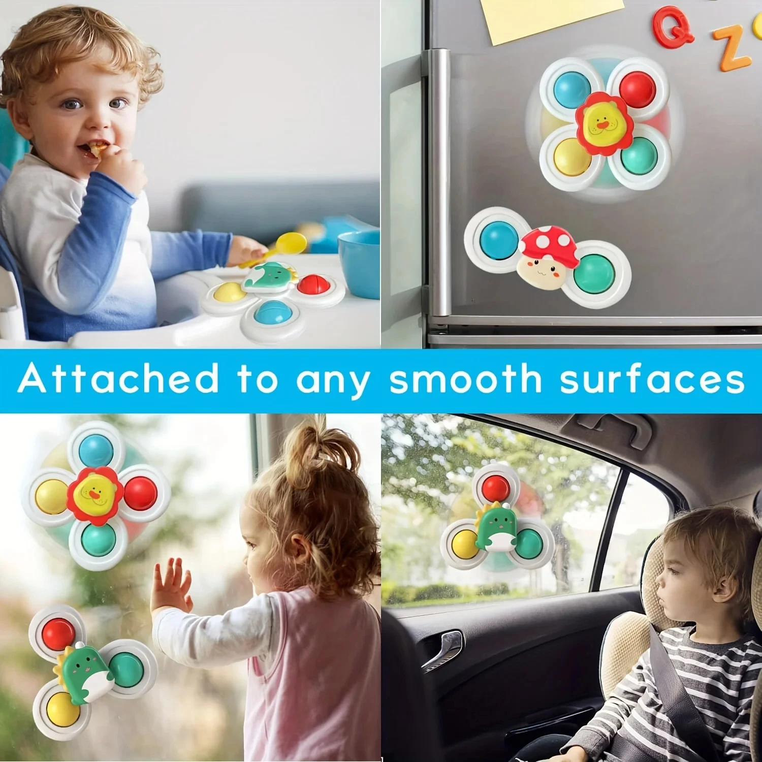 【Suction Cup Spinner toys】 Our suction cup spinner toys are made with high-quality materials, featuring a smooth surface. PVC suction cup on the back, it is non-toxic and harmless. Safe for kids.