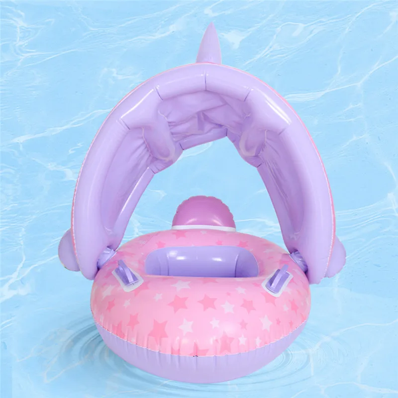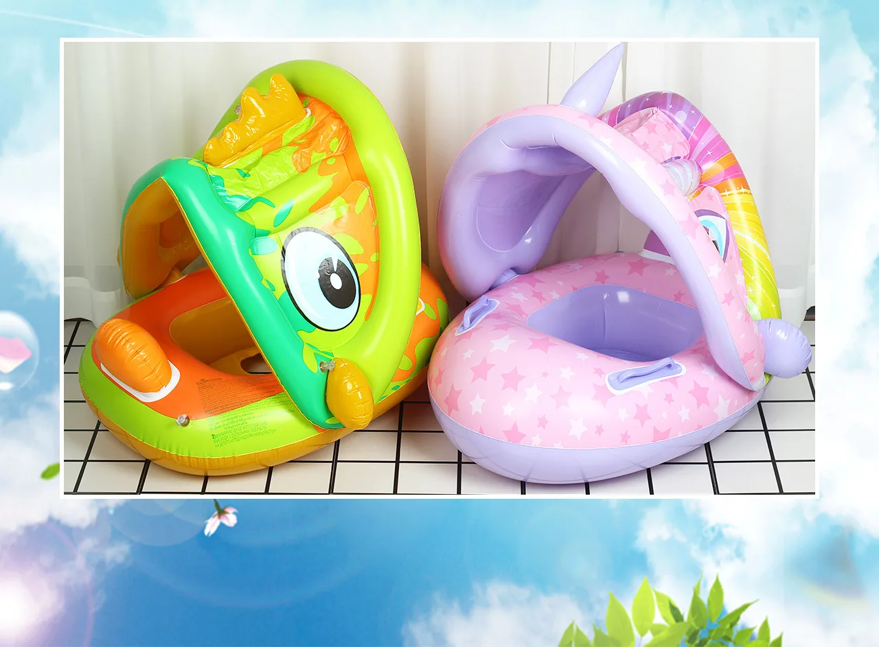 Inflatable Baby Swim Ring Seat Floating Sun Shade Toddler Swim Circle Outdoor Swimming Pool Bathtub Beach Party Summer Water Toy