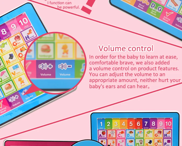 1. The screen of the Kids Learning Pad is a sticker with a clear pattern. Keep children away from TVs and mobile phones and away from radiation.h
