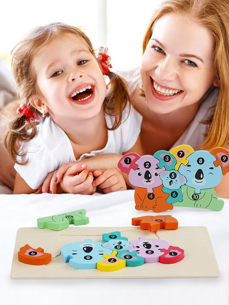 Wooden Jigsaw Puzzle Kids Cartoon Animal Fox Bear Cat Kola 3D Puzzles Games Baby Early Learning Educational Toys for Children